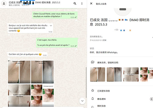 e received amazing feedback from our French client after just one treatment:“Bonjour, oui je suis très satisfaite des résultats. votre appareil est performant, j’en suis très contente 😊”(Hello, I am very satisfied with the results. Your equipment performs very well, I am very happy!)